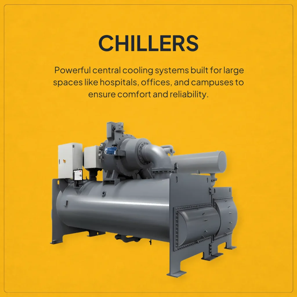 Central cooling solutions for hospitals, corporate offices and institutions needing industrial grade reliability and 24×7 uptime.